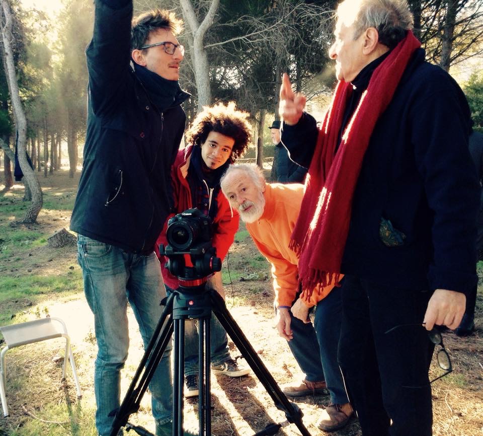 Non diversamente da un’azione teatrale, anche un video contiene molti elementi finzionali. Lo documenta questa foto, nella quale il regista mostra a Robinson come tagliare un tronco. Il paradosso sta nel fatto che il regista non ha la minima pratica di legni e segacci, mentre Brunati/Robinson se ne intende abbastanza.