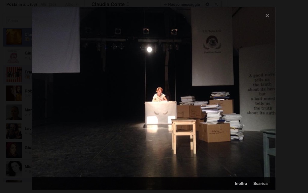 Questo è l’inizio dello spettacolo. La piccola Sally (Giulia Accatino), segretaria nella casa editrice Taylor, ascolta musica a palla e intanto si fa le unghie. E’ l’apertura di una commedia che presto si inoltrerà lungo i sentieri del racconto e del romanzo ma senza rinunciare alle sue prerogative.