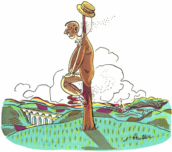 Primi anni venti, un giovanotto con buona mano per il disegno cerca di vincere la ritrosia di un’amica graziosa. Per dimostrarle gli effetti del suo cuore di pietra, un giorno abbozza su un foglio la figura di un uomo che si fa saltare le cervella. Per tutta risposta, lei disegna un uomo dritto come un baccalà che si asfissia col fumo della stufa. Lui un tizio che si annega. Lei uno appeso per il collo. Il giovane prende la cosa sul serio, torna a casa, aggiunge altri diciassette disegni, li correda di buffe istruzioni per l’uso, impacchetta il tutto e lo regala all’amica. Che non si lascia corrompere, ma mostra in giro i disegni e suscita un entusiasmo tale da portare, nel ventisei, alla pubblicazione dell’album.