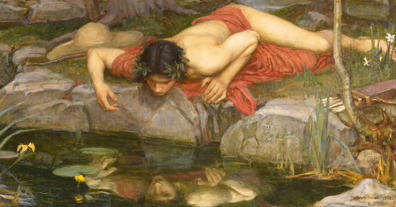 Ben lo sapeva il giovinetto Narciso, il cui mito ci viene subito alla mente se pensiamo al gesto di specchiarsi nell’acqua e alle sue, per Narciso, terribili conseguenze. Tutti conoscono Narciso, la cui struggente vicenda è narrata da Ovidio nelle Metamorfosi. Forse non tutti sanno però che il suo destino equoreo era in qualche modo predestinato dalla natura dei suoi genitori, un fiume (il Cefíso) e una ninfa acquatica, la cerulea Liríope (dagli occhi sfacciati, da lirós, sfacciato, e ops, opós, femm., occhio). Occhi sfacciati che la madre trasmise in eredità al figlio, dal momento che questi li usò in maniera sfacciata, per innamorarsi cioè della sua immagine riflessa nell’acqua di una fonte. Eppure l’indovino, il cieco Tiresia, interrogato dalla madre se Narciso sarebbe giunto a vedere una lunga vecchiaia, l’aveva avvertita. Ci arriverà, aveva risposto, «se non conoscerà se stesso» (si se non noverit, v. 348).