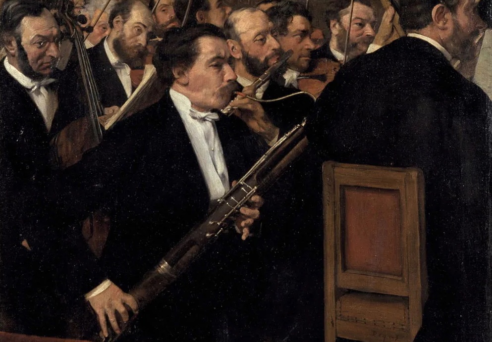Il programma era più variegato di un serpente a sonagli. Succedè senza carità d’intervallo, – dopo una semplice detersione di sudore frontale da parte del Bartholdi stesso – gli succedè l’ineffabile e dondolante Foroposo, (che gli intimi chiamano Fofò) (probabilmente Hector Villa-Lobos, N.d.R.), un brasiliano: giovanissimo, e pure già donno dell’arte. Dopo alcune mossucce tipicamente foroposane, venne senz’altro al fatto: impiastratosi a menare e a stiragliare per dodici minuti buoni un suo caramellone equivoco di accordi di settima, tutto mandorlato dai confettini del triangolo. Tantochè, suasore un romanticone di quelli, l’epa tesa dei timpani principiò ad averne abbastanza: e fu, dapprincipio, un mugugno sordo, opaco, un fremere come di sotterra, quasi per la spinta di gas interni (alla terra) che non potessero estrinsecarsi naturaliter: trombe sincere e chiare, allora, presero il coraggio a due mani; e si diedero a roboare dalla disperazione. Le inseguì precipitatamente lo sfinctere mefistofelico dei contrabbassi, il susurro sfatto delle vecchie viole ottantenni: spernacchiando e sbravazzando inturgiditi violoncelli, in un pizzicato, all’unisono con le lor nonne in vapore: nel sussiego e nel fasto inopinato di quel purgante aprilano, che affettava omai, era chiaro, tutta la tribù dell’orchestra. In chiusura, l’immancabile cataclisma di violini, ottoni, piatti e timpani, coribanti della liquidazione.
