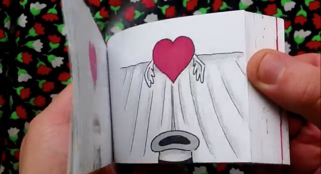 Nel moto pendolare delle cose che sembrano estinguersi ma che all’ultimo momento ritornano, ecco la carta, anzi il cartoncino, il libriccino su misura per chi non trova le parole per dirlo. Sfogliando rapidamente questo blocchetto, la storia si dipana, muta, e in pochi secondi svapora. La storia la si può commissionare a theflippist.com e sarà la vostra storia. La casa produttrice, pubblicizzando il suo prodotto, ne riduce purtroppo le potenzialità proponendolo come un mezzo per chiedere scusa, per fare una domanda di matrimonio, per proporre una vacanza… insomma un impiego strumentale. Molto più interessante sarebbe costruire un racconto della durata di pochi secondi, commissionando ai disegnatori della theflippist una piccola autobiografia da stampare in qualche centinaio di esemplari e da recapitare ad amici e parenti come ricordo dopo la propria dipartita, al posto del logoro santino. Una vita che si consuma in qualche battito di ciglia e vola via.
