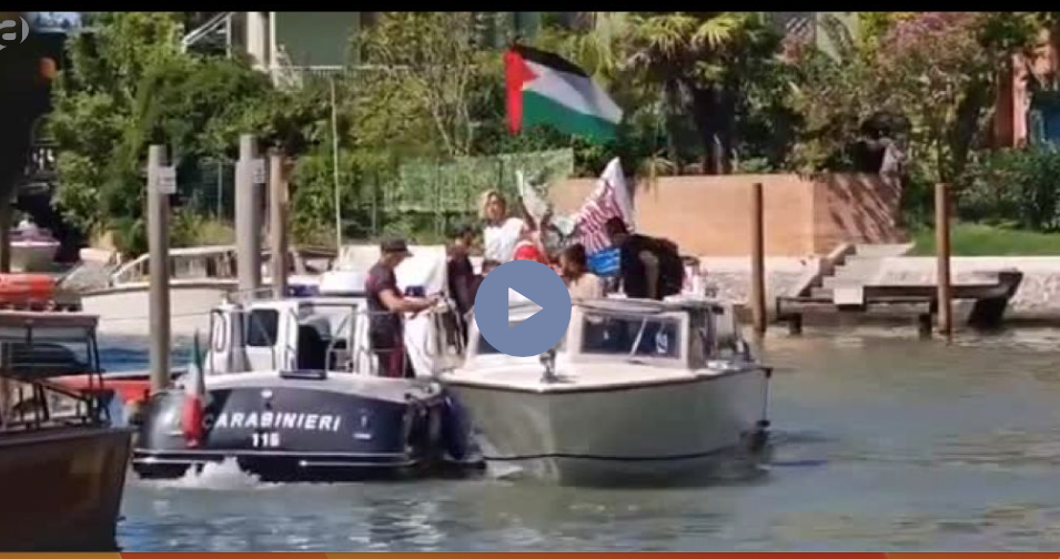 La polizia ha fermato al Lido la barca con l’artista Laika e Anna Foglietta, che presentavano l’opera “We are coming” a sostegno della Global Sumud Flotilla, secondo quanto riferisce il portavoce della street artist. “O si sta dalla parte degli oppressi, o si è complici. Anche il silenzio è complicità”, dichiara l’artista Laika in una nota. “L’arte oggi è un’azione pacifica e non violenta di sostegno alla Flotilla”, commenta l’attrice Anna Foglietta. Video di Davide Bosco.